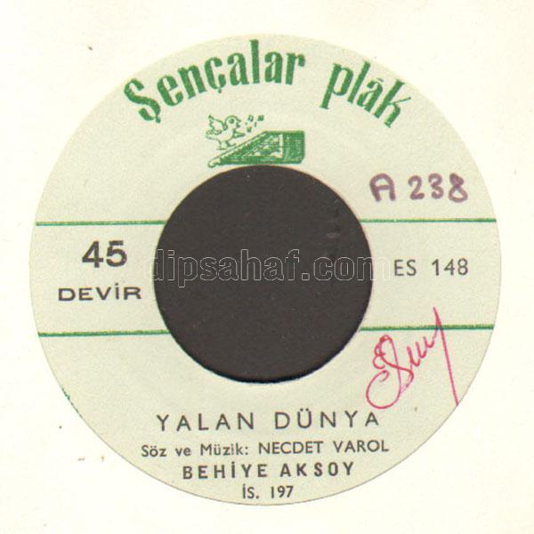 BEHİYE AKSOY yalan dünya 45 LİK 15/06/2019 dipsahaf Tsm 45s BEHİYE AKSOY yalan dünya 45 LİK için yorumlar kapalı FIYAT-şu anda yok FIRMA-ŞENÇALAR A-YALAN DÜNYA B-ÜMİTLERLE GELDİK DÜNYAYA -PLAK-7/8