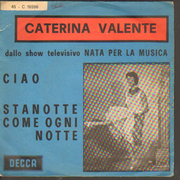 CATERINA VALENTE ciao 45 LİK 23/05/2014 admin yabancı Pop 45s Leave a comment FİYAT-şu anda yok FİRMA-DECCA (İTALYA) A-CIAO B-STANOTTE COME OGNI NOTTE KAPAK-8 PLAK -8