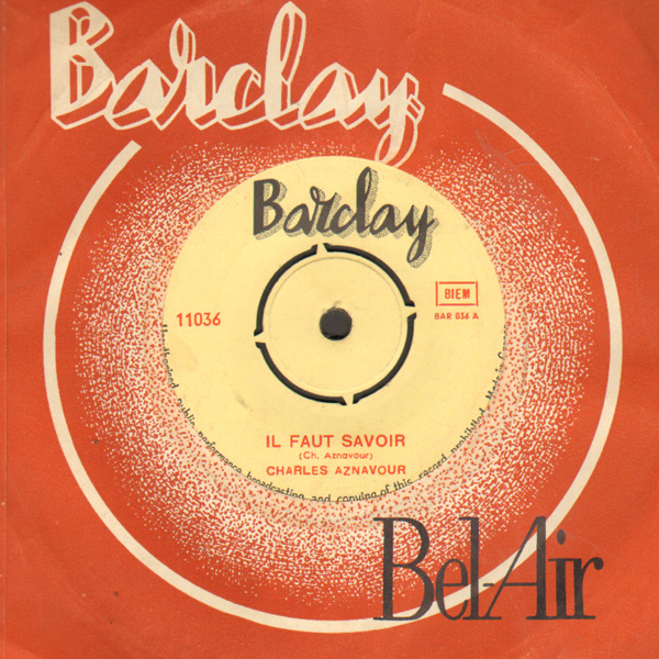 CHARLES AZNAVOUR il faut savoir 45 LİK 27/03/2015 admin yabancı Pop 45s Leave a comment FIYAT–şu anda yok FİRMA-BARCLAY (YUNANİSTAN) A-IL FAUT SAVOIR B-AVEC CES YEUX LA KAPAK-ORJ FİRMA KABI PLAK -8