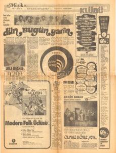 MİLLİYET MÜZİK KLÜBÜ GAZETE 12 ARALIK 1971 ERKİN KORAY ve SÜPER GRUP DÜN BUGÜN YARIN