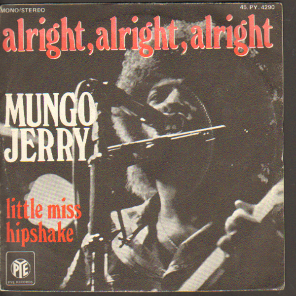 MUNGO JERRY alright alright 45 LİK 1973 01/05/2014 admin rock 45s Leave a comment FİYAT-5 TL FİRMA-PYE (UK) A-ALRIGHT ALRIGHT ALRIGHT B-LITTLE MISS HIPSHAKE KAPAK-8 PLAK -8/9