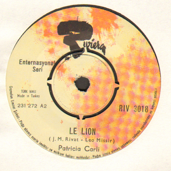PATRICIA CARLI le lion TÜRK BASKI 45 LİK 13/12/2013 admin yabancı Pop 45s Leave a comment FIYAT –5 TL FİRMA – RIVIERA (TÜRKİYE) A-LE LION B-TOI PLAK -8