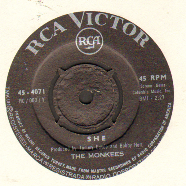 THE MONKEES she TÜRK BASKI 45 LİK 1967 02/02/2022 admin rock 45s Leave a comment FIYAT–65 TL FİRMA-RCA (TÜRKİYE) A-HOLD ON GIRL B-SHE KAPAK-ORJ FİRMA KABI PLAK-8/9